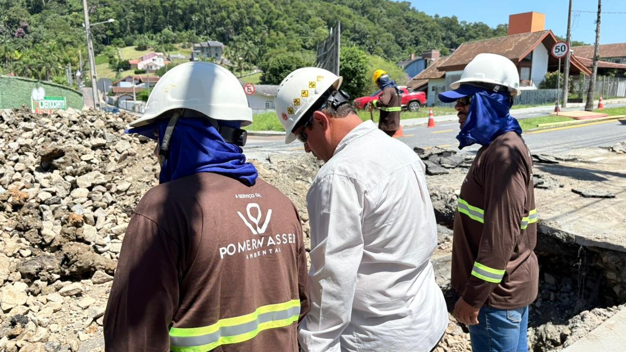 A implantação da rede coletora de esgoto em Pomerode segue em ritmo acelerado, com várias frentes de trabalho simultâneas. As obras envolvem a movimentação de máquinas, equipamentos e equipes técnicas, o que pode causar alterações temporárias na rotina das ruas e dos bairros atendidos.